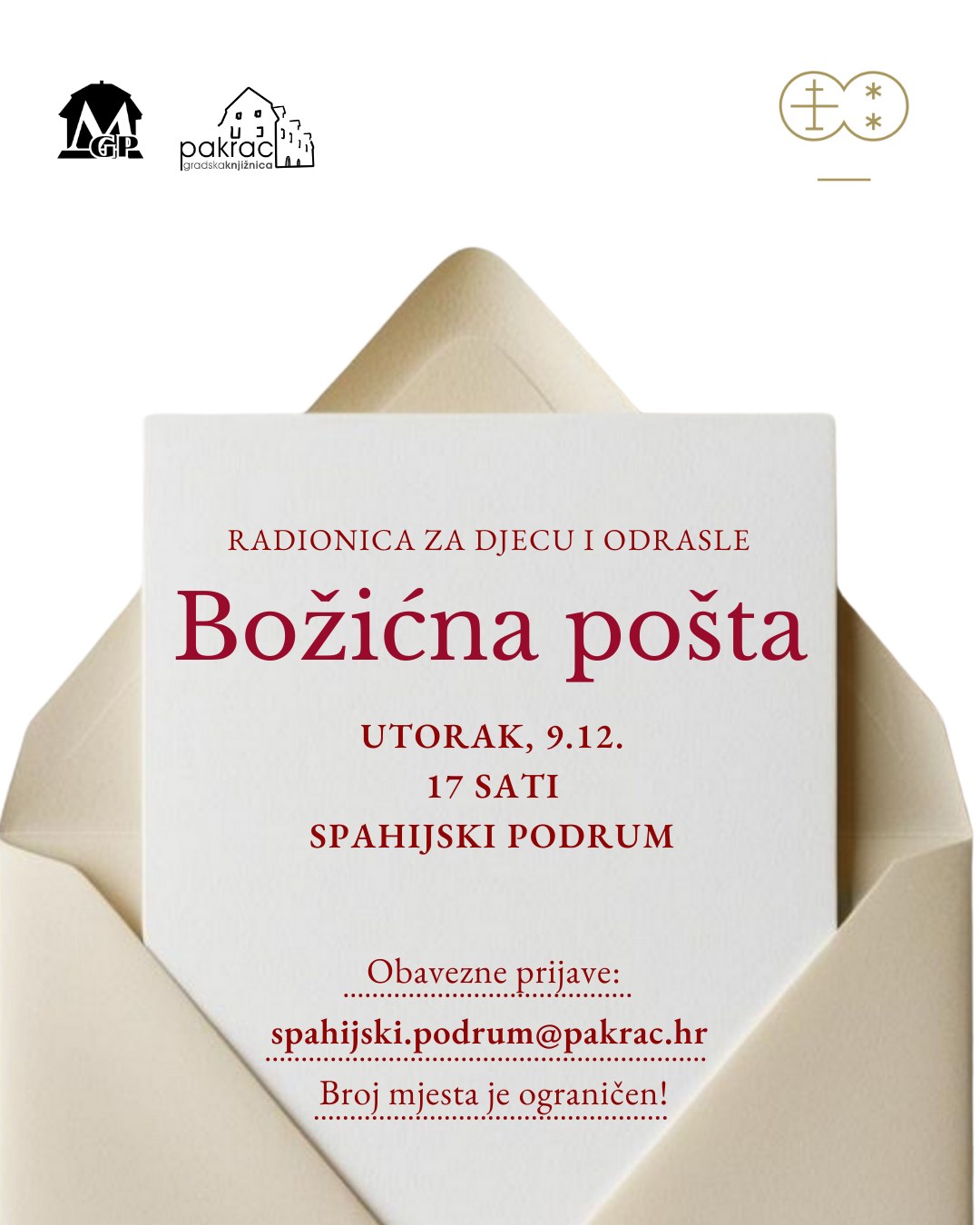 U utorak, 9. prosinca u 17 sati, pozivamo vas na posebnu blagdansku radionicu posvećenu božićnom običaju – slanju pravih, fizičkih čestitki! ![]()